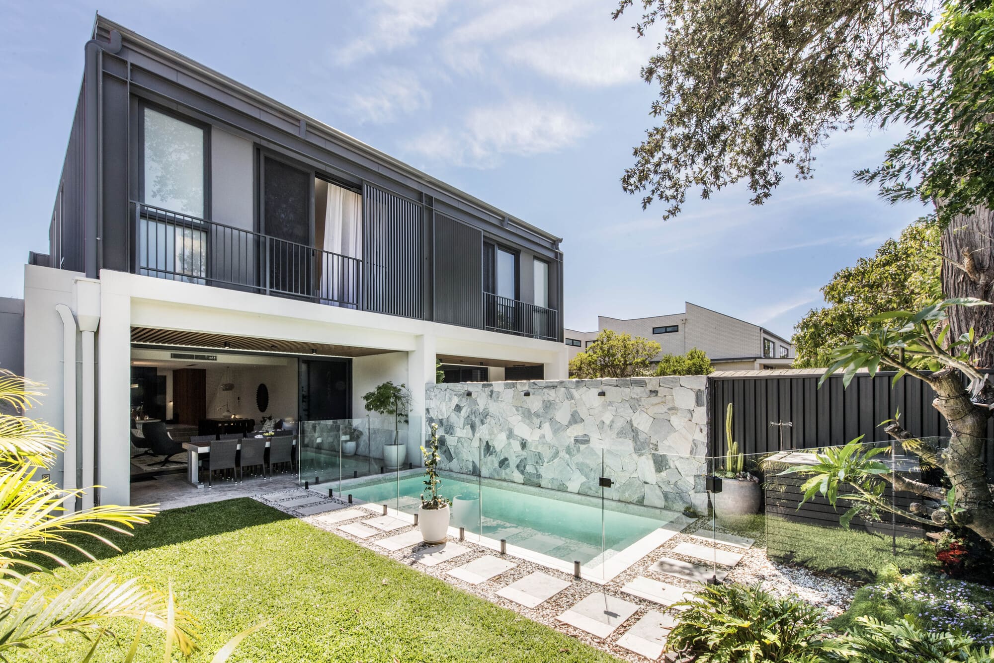 Completed in Wareemba, Sydney in 2023, this private residential project brings together multiple bespoke glass interventions: frameless glass pool fencing, custom shower screens, and additional interior and exterior glass elements developed to support a clean, contemporary architectural language.